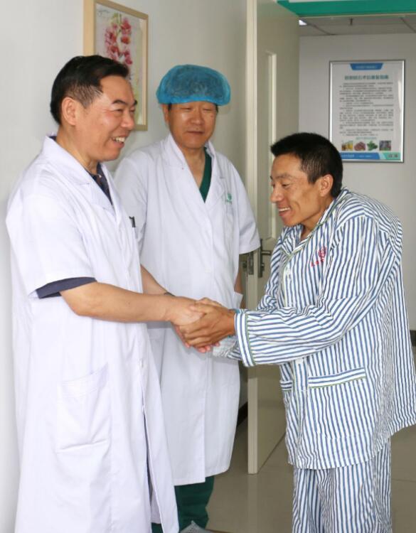 手术后,住院部医护人员对胡先生进行了精心的护理。由于胡先生家住河北省,来回非常不方便,而且自从胡先生患病之后,他的妻子就担起了家庭的重担,家里的农活和上学的孩子都需要胡先生的妻子去照顾,所以她无法陪伴在胡先生身边。相对于亲朋好友经常探望的病友,胡先生的病房里往往显得格外的冷清。所以为了不让胡先生感到太孤单,偶尔发现胡先生身边少点什么,医护人员都会自掏腰包主动为他添置,丁主任还会时常跑到病房去查看胡先生的身体状况,有空的时候就会和他聊聊天,叮嘱他一些日常生活中需要注意的事项。在这样的细心照料下,胡先生的身体很快得到的康复,术后第五天,就已经可以出院了。出院前的胡先生拉着每位医护人员的手表示感谢,激动地流下了热泪!