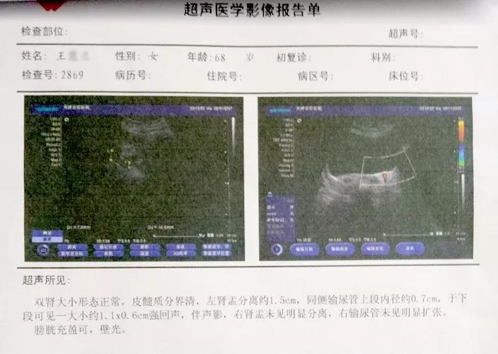 之后多方打听,来到天津百信医院就诊。随后的彩超检查显示,患者患“左输尿管结石”并“左肾积水”。患者有肺癌病史2年,肺癌已转移淋巴和肝脏。