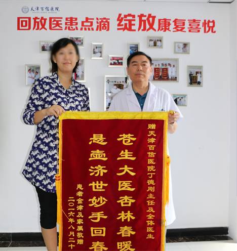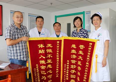 故事本应到此结束,可就在今天,金老师和爱人特别定制了两面锦旗来到百信医院,赠送给丁德刚主任及住院部全体医护人员。金老师介绍,之前还曾担心手术会影响到教学工作,现在已经开学几天了,身体状况相当好,有效感受不到是刚刚手术后。金老师说:“选择这个特别的日子,就是为了加衷心的表达感谢之情!”